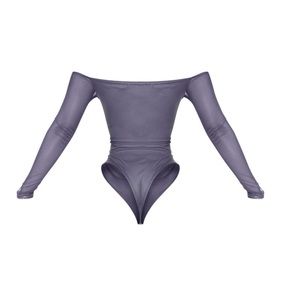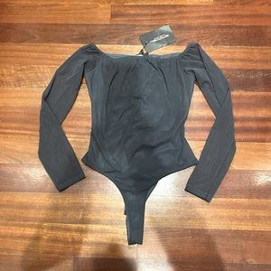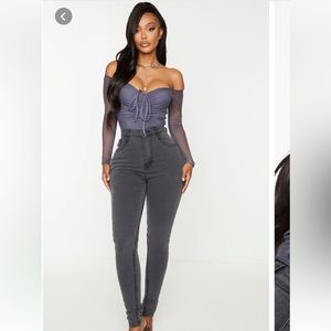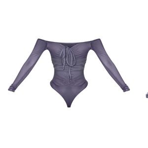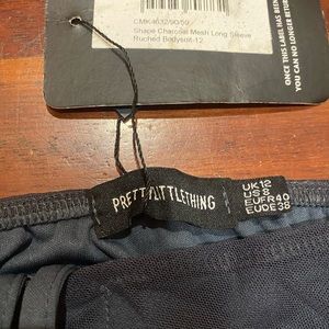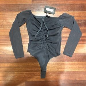 🪩NWT! Pretty Little Thing shape charcoal mesh ruched bodysuit - size 8