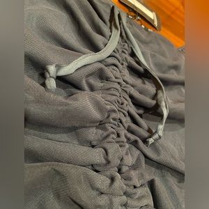 Features a charcoal mesh fabric with long sleeves and a ruched front detail. 95% polyester and 5% elastane. New with tags attached. Please see last picture for sizing recommendations. It’s a size 8 but fits like a small/medium. Sold out online.
