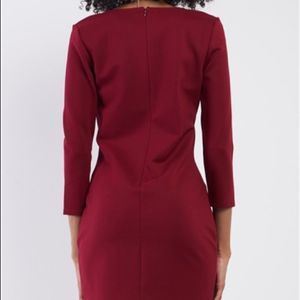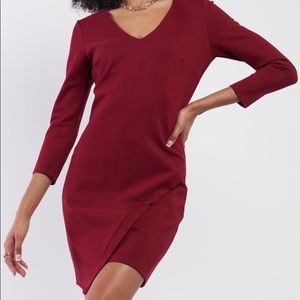 Brand New! SUGARLIPS Burgundy Bodycon V-neck Dress. 3/4 sleeve. Diagonal pleat. Stretchy. Sexy, chic dress!