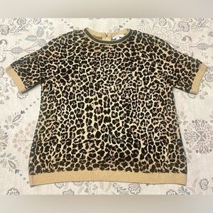 Lightweight fabric with a scooped hem and V-Neck. Bright pink color with a little more of a relaxed fit.