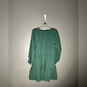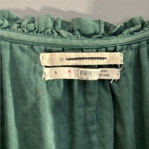 Anthropologie Mini Peasant Dress Green Long Sleeve Button Front Pleated Size S