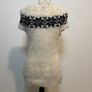 Very stretchy top layer. The weave is loose enough to see through, and though the wool is soft, it's itchy.