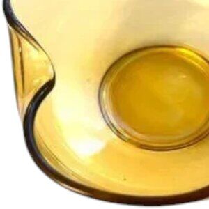 Elevate your space with this exquisite vintage Viking art glass bowl from the iconic 1960's Viking Epic line. Its color is honey yellow/amber/gold and it features a unique rolled rim that gracefully drapes or folds in three times, adding style and intrigue. This trinket dish can be used to serve nuts or candy, to hold jewelry or to store paperclips and other office supples. It's a beautiful MCM piece in excellent condition.