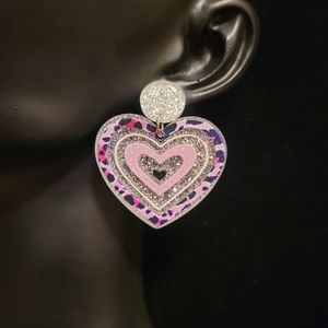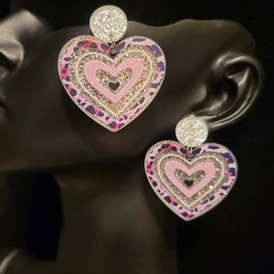 2/$20 Resin Glitter Leopard Pattern Heart Earrings