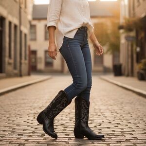 👢Gorgeous pair of vintage, 1990's Frye cowboy / western boots in stunning black color. Ultra rare find - never to be seen again! Matches beautifully with any outfit and a must-have for your all-season wardrobe. Wear these at your next concert, festival, rodeo, date night, or weekend out!