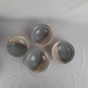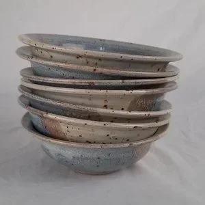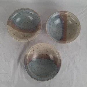 Gorgeous preowned bowls in "like new condition". Blues, browns, gray, with speckles of brown in each bowl. Blue Spruce Pottery has operated in Bend Or since 1976 and are still up and running. These bowls, made in 1988, are no longer being produced as well as this size is not featured in the new products. All of their pottery is made one piece at a time on a potter's wheel. The high temperature that they use produces a very durable product that given proper care will last a lifetime.