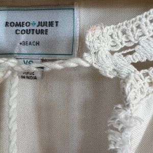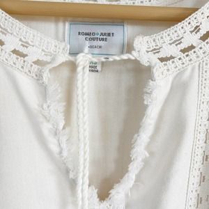 Romeo + Juliet Couture Cold Shoulder cover up tunic mini dress Split Neck Fringe