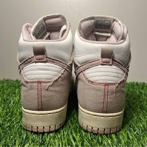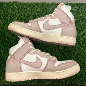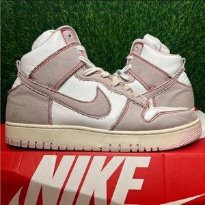 Nike Dunk High 1985 Pink Denim Barely Rose Men’s Size 11 Sneakers DQ8799-100. Come with original (damaged) box. Have some scuffs and signs of wear. Worn but still a sick pair of kicks!