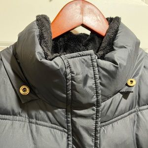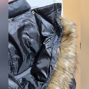 Tommy Hilfiger Women’s Size XL black winter coat. Full zip and snap closure. Faux fur removable hood. Both hood and faux fur can be removed. Good condition.