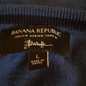 Banana Republic stunning blue stretchy Italian Merino Yarn by Baruffa. Gorgeous blue color. First pix is stock photo in a different color just to show how this style looks on. Well loved and enjoyed. It’s so comfortable and classy