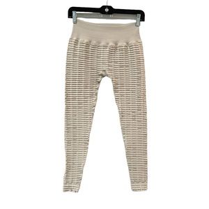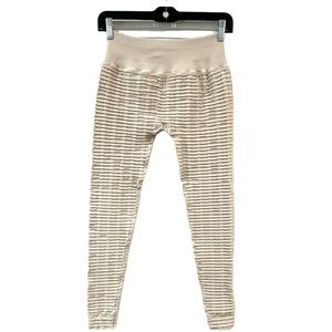 Nux yoga workout gym textured pant legging leggings waffle knit cream beige training small compression