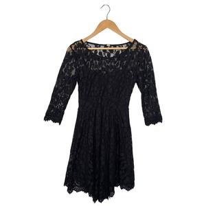 Free People Floral Embroidered Mesh Lace Mini Dress Black S