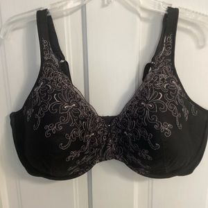 PLAYTEX: all black with mauve colored lace overlay lightly padded bra. Style 4513. Size 42DD. Has a three hook and eye closure. Has never been worn. Only tried on.