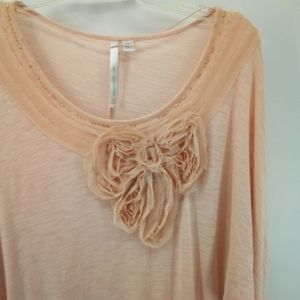 LC Lauren Conrad Pima Cotton Blend Blush Pink Beaded Flower Top M