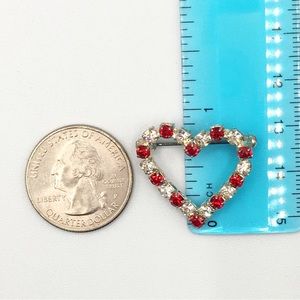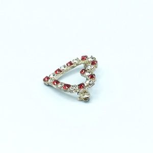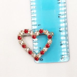 Dainty Crystal and Red Rhinestone Heart Brooch Pin