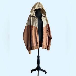 - Has pockets, embroidered lettering, faux leather sleeves (check photo for more fabric details)