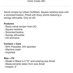 🥀NWT Urban Outfitters Cream Velvet Rosie Romper
