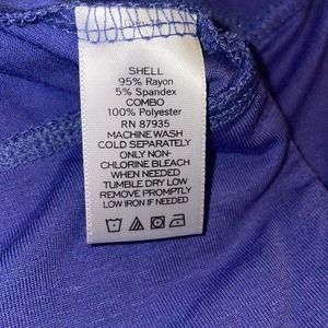 Light purple soft and stretch material with mesh lining. Drapey front with pockets