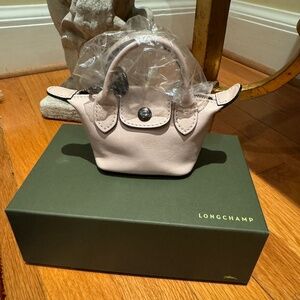 Style/Fabric: Leather imported, comes with a dust bag, micro Nano bag, scaled-down leather version of Longchamp's Le Pliage boasts the same design that made the bag a worldwide cult favorite.