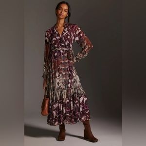 Anthropologie Long-Sleeve Silk Shirt Dress