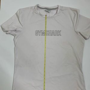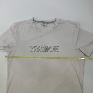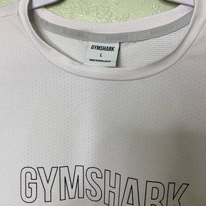 This is a men’s white active wear tee. It has “GYMSHARK” across the chest. It’s a size large. It has a few stain on it but nothing to noticeable. In great preowned condition.