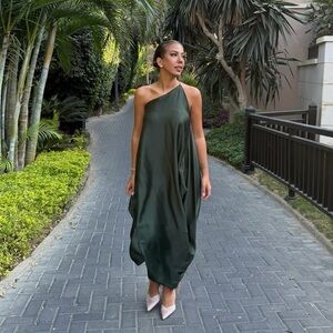 Zara Valentine’s satin pink long sleeve wrap mini dress coctail Wedding party