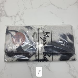 New Myra Bag Black & White Cow Print Cowhide Leather Hair On Wallet