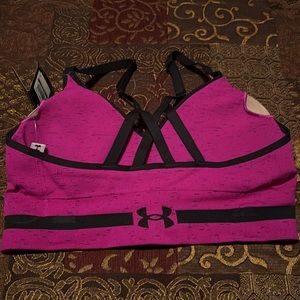 New! Womens Under Armour Padded Compression Sports Bra. Purple and black color way. Womens size XL bust 13.5 length 12. Pristine condition. See all photos