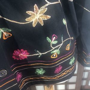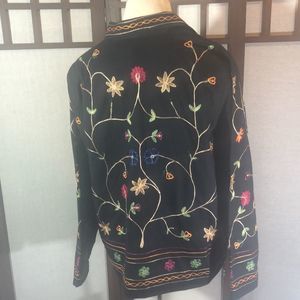 Denim & Co. embroidered black jacket/ large/ cotton, orange, green, red, yellow