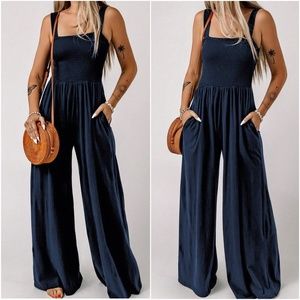 020 Boho Smocked Bodice Wide Leg Cami Jumpsuit