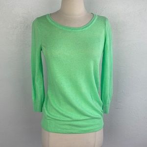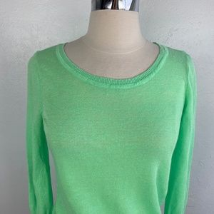 Olivia Sky Womens Sweater Medium Bright Green Linen Rayon Lightweight Pullover