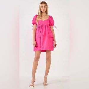 ENGLISH FACTORY Women's Pleated Detail Puff Sleeve Mini Dress. SIZE: LARGE COLOR: PINK