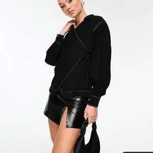 ASOS Y.A.S Contrast Stitch Wrap Shirt In Black