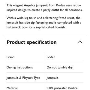 Classy and chic Boden Angelika jumpsuit. NWT. Wide legs, tailored pants with gorgeous neck bow. The color is a beautiful deep green. Very elegant and also sexy.