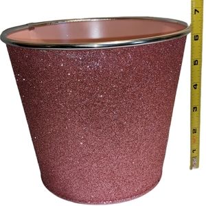 Pink Glitter Covered Metal Pail Planters Set of 3