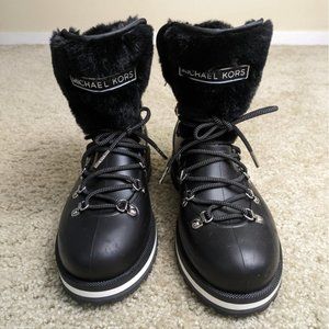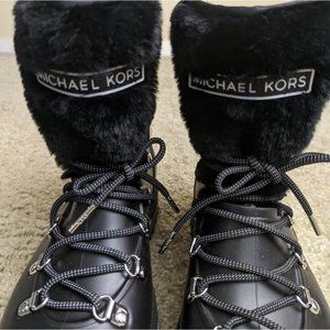 Michael Kors black lanis PVC and faux fur ankle rain boots size 6