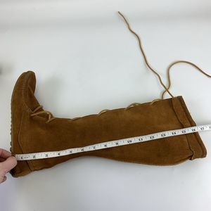 Minnetonka Tan Suede Front Lace Up Tall Boots Tan Fringe Removed 7422 Womens 7.