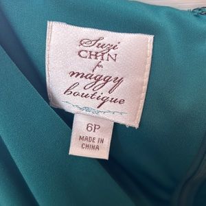 Suzi Chen green dress beautiful rushing in front petite size 6 fitting to the bodice great dress for a wedding or dance