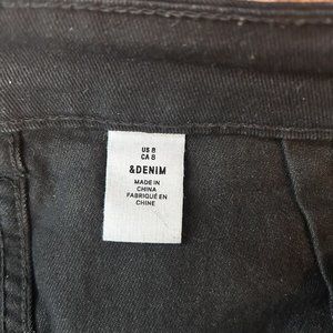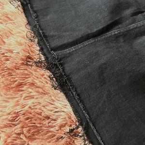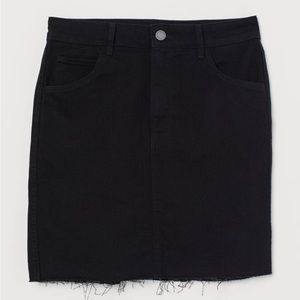 Short, 5-pocket skirt in washed stretch denim. Zip fly and raw-edge hem.