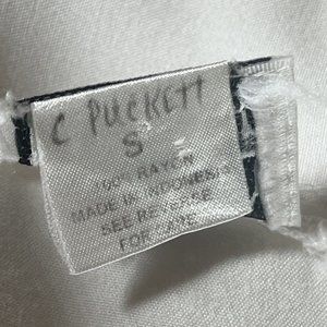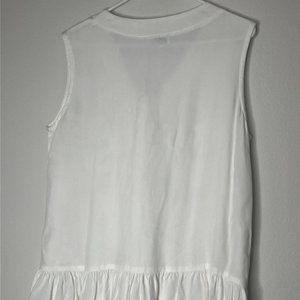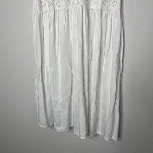Halsey Collection. Woman's Dress, Sleeveless, White, Laser Cut Lace Front Chest. V - Neck with Covered Buttons. The tag says size S, fits large. See measurements below. Pre-owned in good condition. Needs cleaning. Has stains. Measurements: Armpit to Armpit: 20.5 Waist, Side seam to side seam: 22.5 Back of collar to waist: 20 Waist to Hem: 28.5 Back of Collar to Hem: 48.5