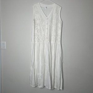 Halsey Collection Dress Womans White Laser Cut Lace No Sleeve V-Neck Buttons