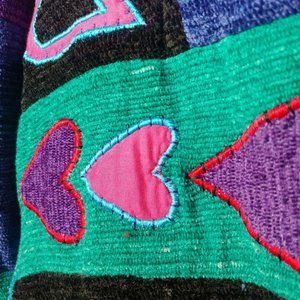 Alex Kim Wearable Art Women's Small Woven Patchwork Jacket Hearts Colorful Lined