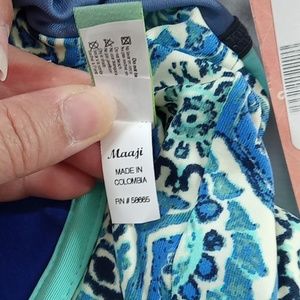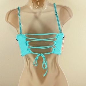 NEW MAAJI REVERSIBLE Bikini Top Blue Aqua MEDIUM Swim Vacation Summer Beach