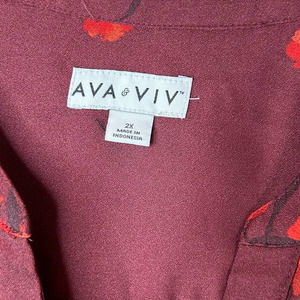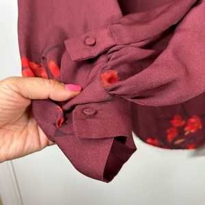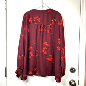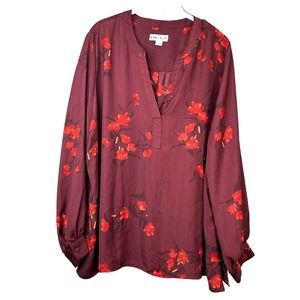 Ava & Viv Target Red Balloon Sleeve Floral V-Neck Pullover Blouse Plus Size 2X