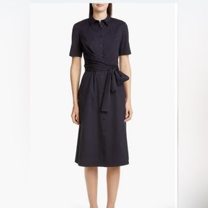 Lafayette 148 Wrenley Stretch Cotton Shirt Wrap Dress in Navy