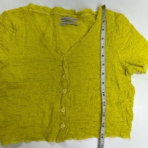 Urban Outfitters Yellow Button Front Cropped Ruffled Stretch Shirt Size Medium