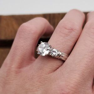 Size 8 925 Sterling Silver Stunning Triple Cubic Zirconia Ring