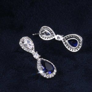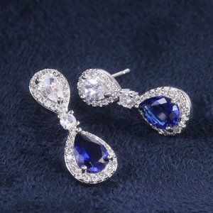 🎁 Noble Water Drop Royal Blue And White Pear Zircon Stud Earrings, UNVN12417