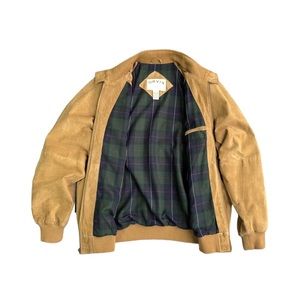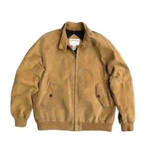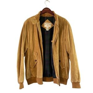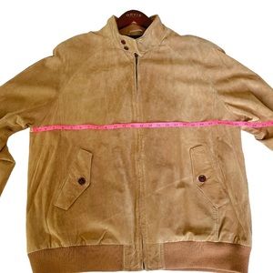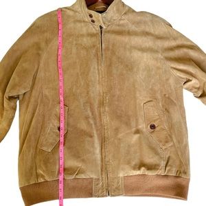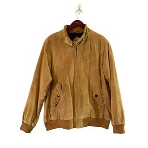 Orvis Mens Camel Tan Suede Leather Bomber Jacket, Size Large