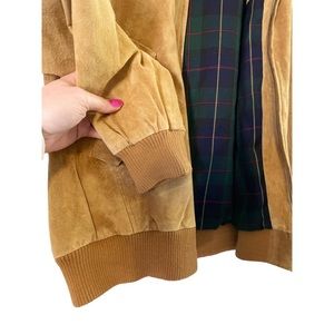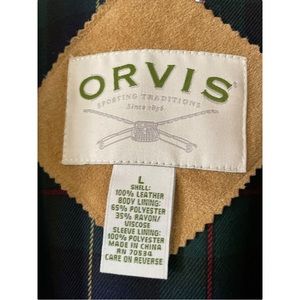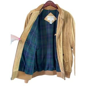 Orvis 100% Suede Leather Jacket Size Large Plaid Lining Coat.